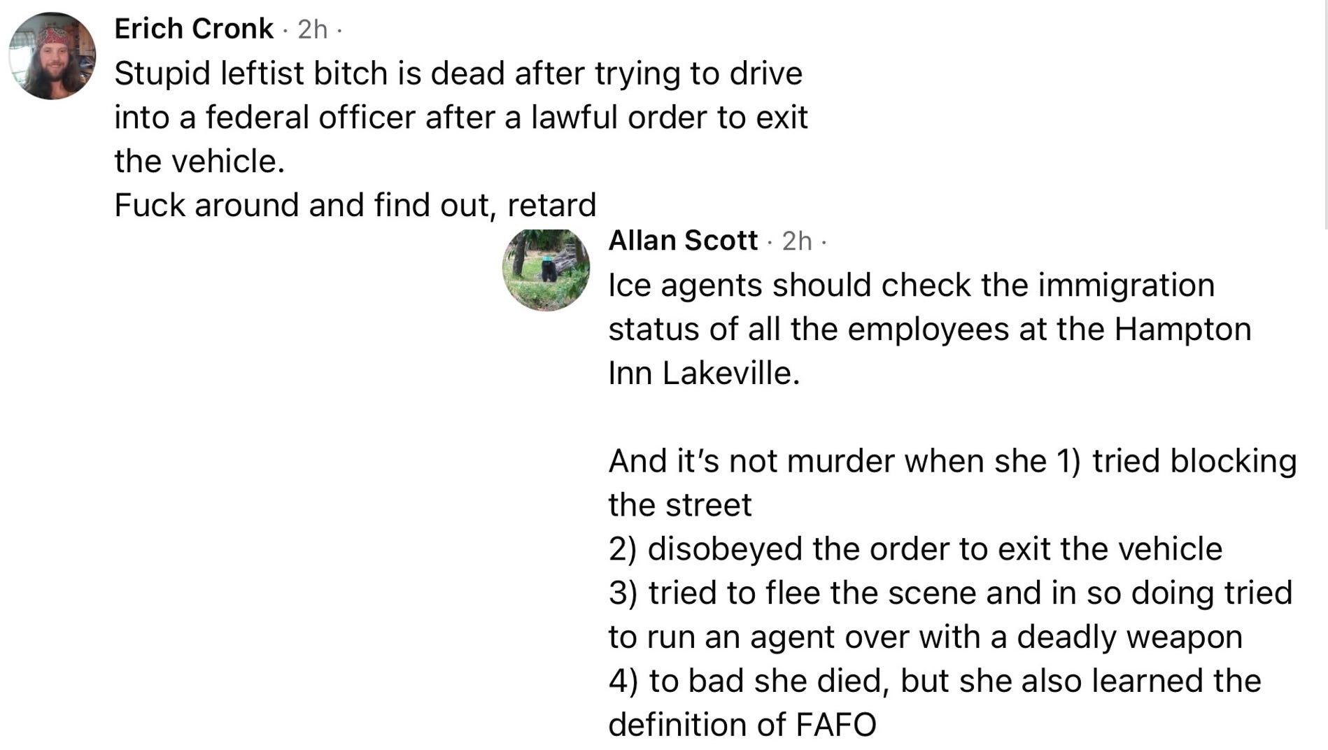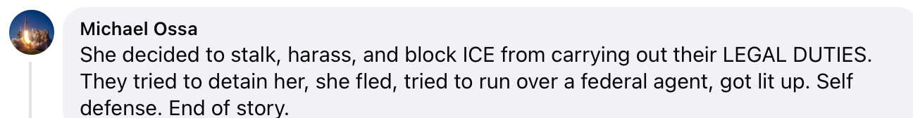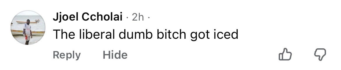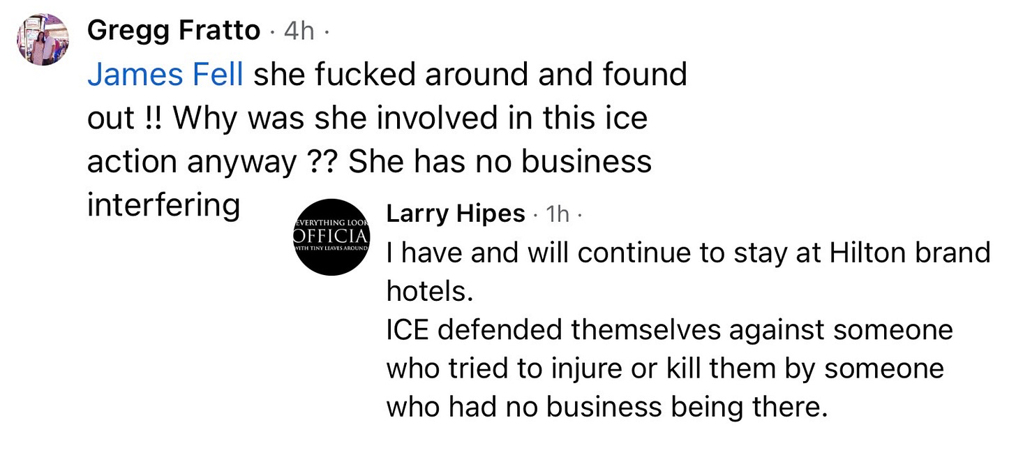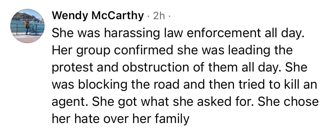 And like with Kent State Massacre, there are plenty of MAGAts ready to leap to the defense of ICE and proclaim that Good got what she deserved. Here is a sample of some of the comments on that post: